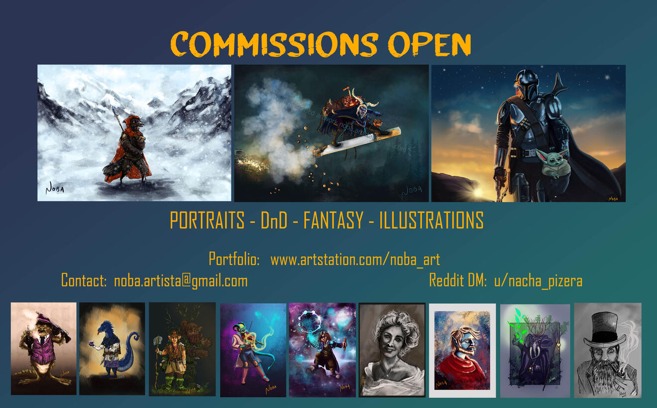minor changes during this stage and change colors.- Complex alterations or additions of objects that were not previously established in the negotiation may increase the value of the illustration.- 3 free revisions per illustration, as long as it is not necessary to start from the beginning or major changes. After that, depending on the difficult, it Will be charged $ 10 per change.DELIVERY: Once you complete the final payment, I will send you a high-resolution via email file of the completed piece: High resolution JPEG (default sheet A4, 210 x 297mm), if you want PNG file, please let me know.- The art is only personal use, (you can’t use it for merchandise / commercial purpose).- I can post the commission on my portfolio networks, Customers are always named as the characters' owners. If you do not want your order or your name to be published, please let me know (a 15% fee Will be charged if the customer does not want to post the commission)- If the customer withdraws the order after the sketch, the amount referring to the sketch + transaction fees will be retained. The remainder will be returned.I WILL DRAW: portraits, characters, environments, fan art